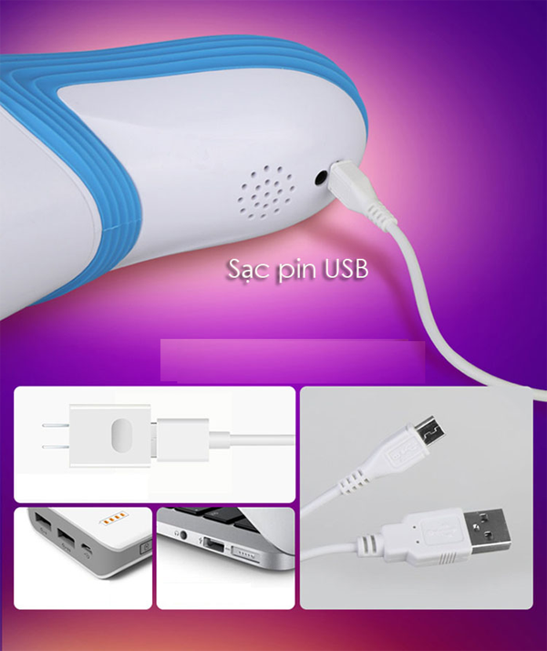 Máy sử dụng pin sạc lithium cao cấp có cáp cổng sạc USB kết nối với hiều thiết bị điện tử hiện đại ngày nay.